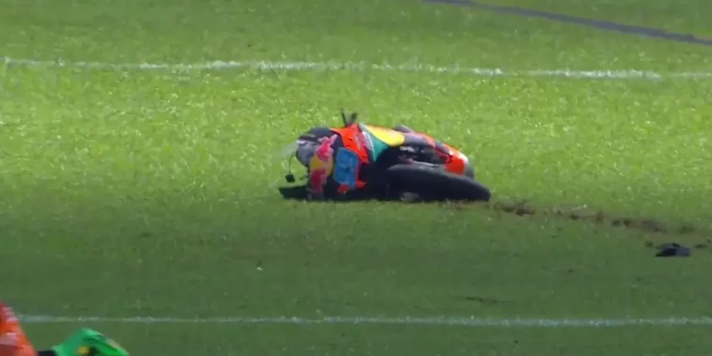 Entretanto, quando faltavam apenas quatro voltas para o fim, a situação mudou abruptamente. Bagnaia, que ainda lutava por um resultado forte, sentiu algo errado em sua Ducati ao entrar na curva 1, e logo verificava a moto por trás, percebendo que havia uma falha. Resultado: abandono da prova.