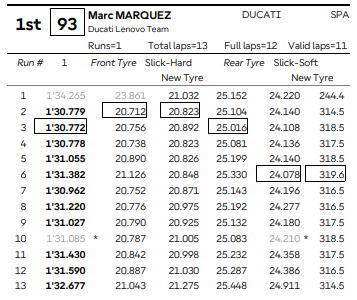 Correndo em casa, Fabio Quartararo conseguiu levar a Yamaha à quarta colocação, mostrando evolução em relação às últimas etapas. Com um melhor tempo pessoal de 1’30.913, o francês foi competitivo, mas claramente ainda sofre para acompanhar o ritmo das Ducatis nas longas sequências de voltas rápidas.
