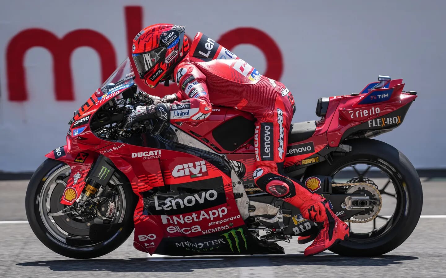 O espanhol da Ducati domina a corrida, com Marco Bezzecchi e Pedro Acosta completando o pódio. Atual campeão retorna às pistas com forte desempenho.