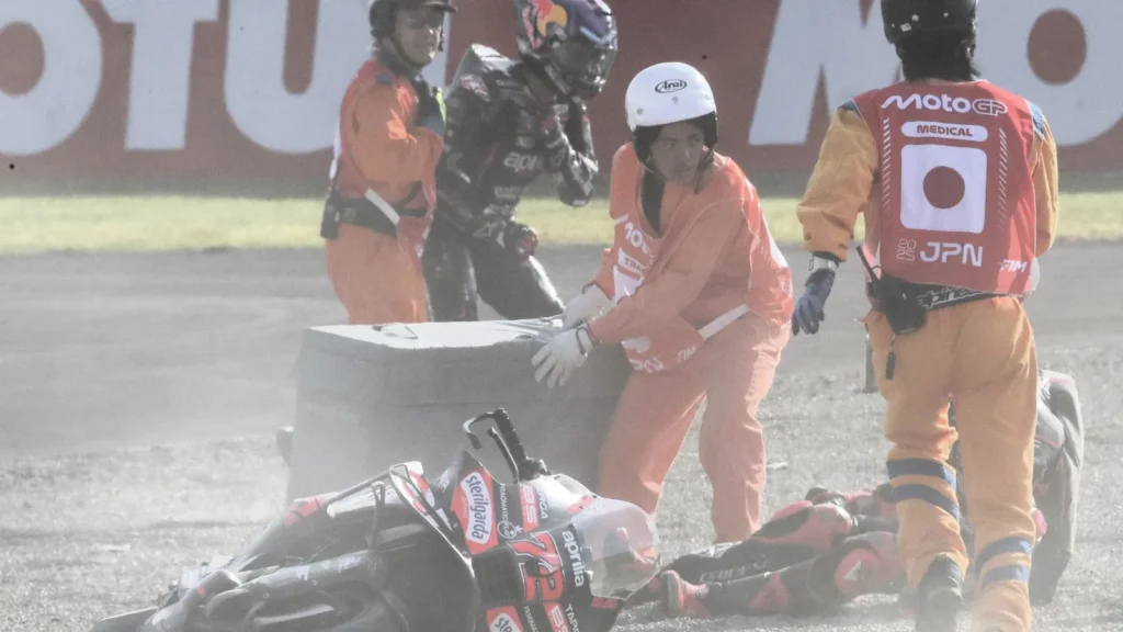 No sábado, durante a corrida Sprint do GP do Japão no circuito de Motegi, Jorge Martín sofreu uma queda logo na largada, na Curva 1, ao tentar uma manobra de ultrapassagem por dentro. Sua moto perdeu aderência ou travou a dianteira, e ele colidiu com a moto do companheiro de equipe Marco Bezzecchi, gerando um efeito em cadeia que derrubou ambos.
