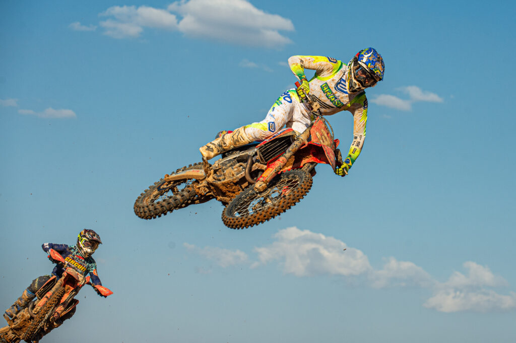 Sem pressão por já ter garantido a taça da MX2, Bernardo Tibúrcio aproveitou a etapa para acelerar forte também na MX1. Foi segundo colocado na primeira bateria e venceu a segunda, tornando-se o maior pontuador do domingo. O mineiro agora foca no Motocros s das Nações, nos Estados Unidos, em outubro.
