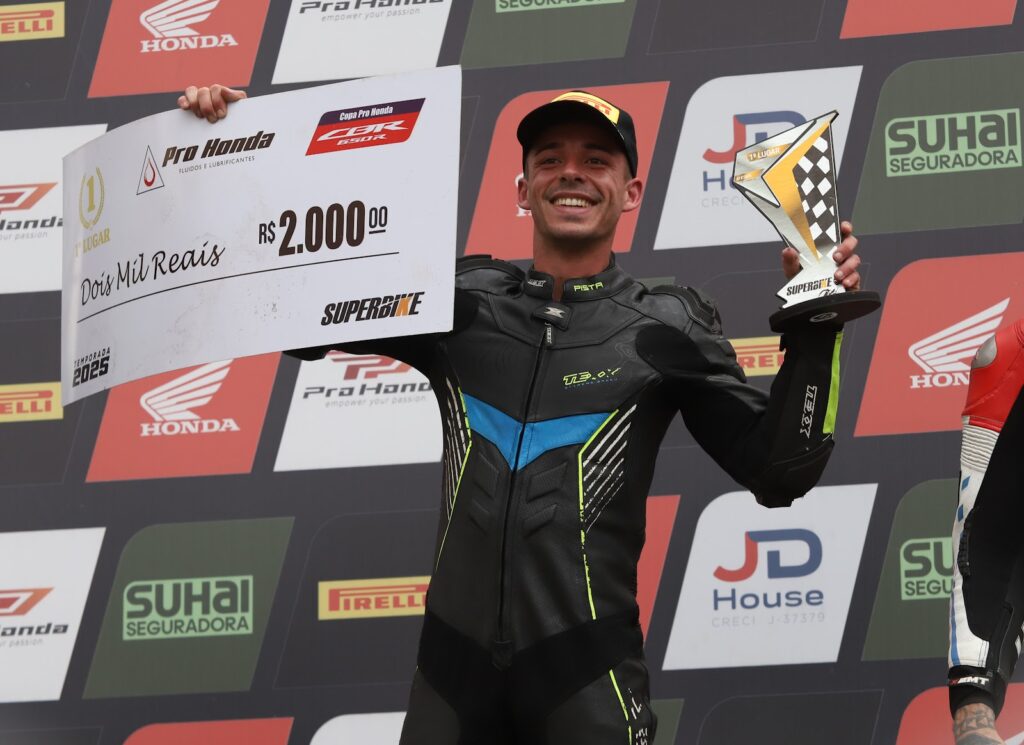 Quem também brilhou em Londrina foi João Carneiro. Largando da sétima posição, o piloto mostrou regularidade e ultrapassagens decisivas até chegar ao segundo lugar, o melhor resultado de sua carreira na SuperBike Pro. O desempenho o levou à vice-liderança da temporada, a apenas cinco pontos do líder.