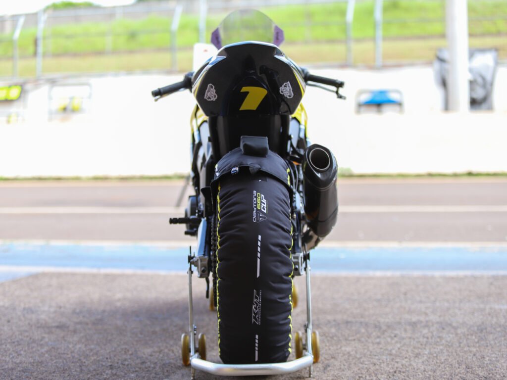 - Os aquecedores da KWT garantem que os pneus das Triumph Daytona 660 alcancem a temperatura ideal antes das provas, melhorando aderência e segurança.