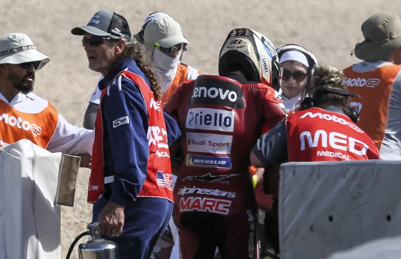 Márquez chegou a demorar alguns instantes para se levantar, o que gerou preocupação imediata no paddock. Ainda assim, conseguiu sair por conta própria e retornou diretamente aos boxes da Ducati, sem passar inicialmente pelo centro médico.