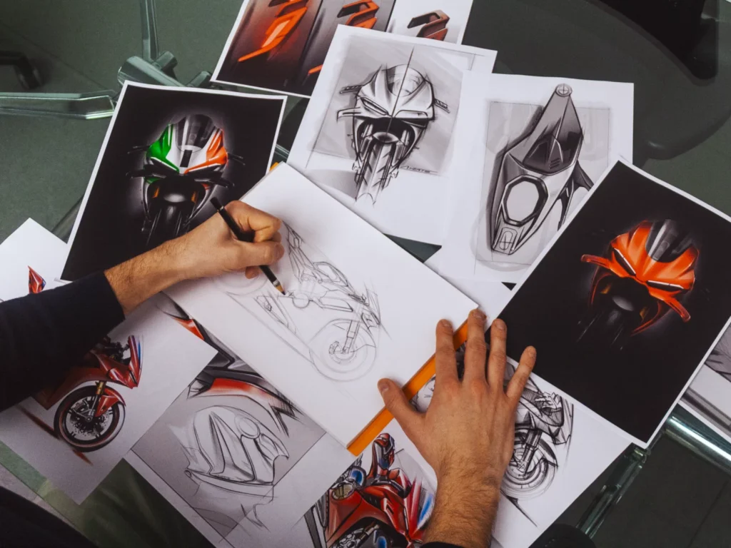 Em sua sétima geração, a Panigale V4 representa a expressão mais recente do DNA de competição da Ducati. O modelo evolui o conceito de integração entre aerodinâmica e estilo, no qual cada superfície cumpre simultaneamente um papel técnico e emocional. O resultado é uma motocicleta cujo impacto visual está diretamente ligado à sua eficiência dinâmica.