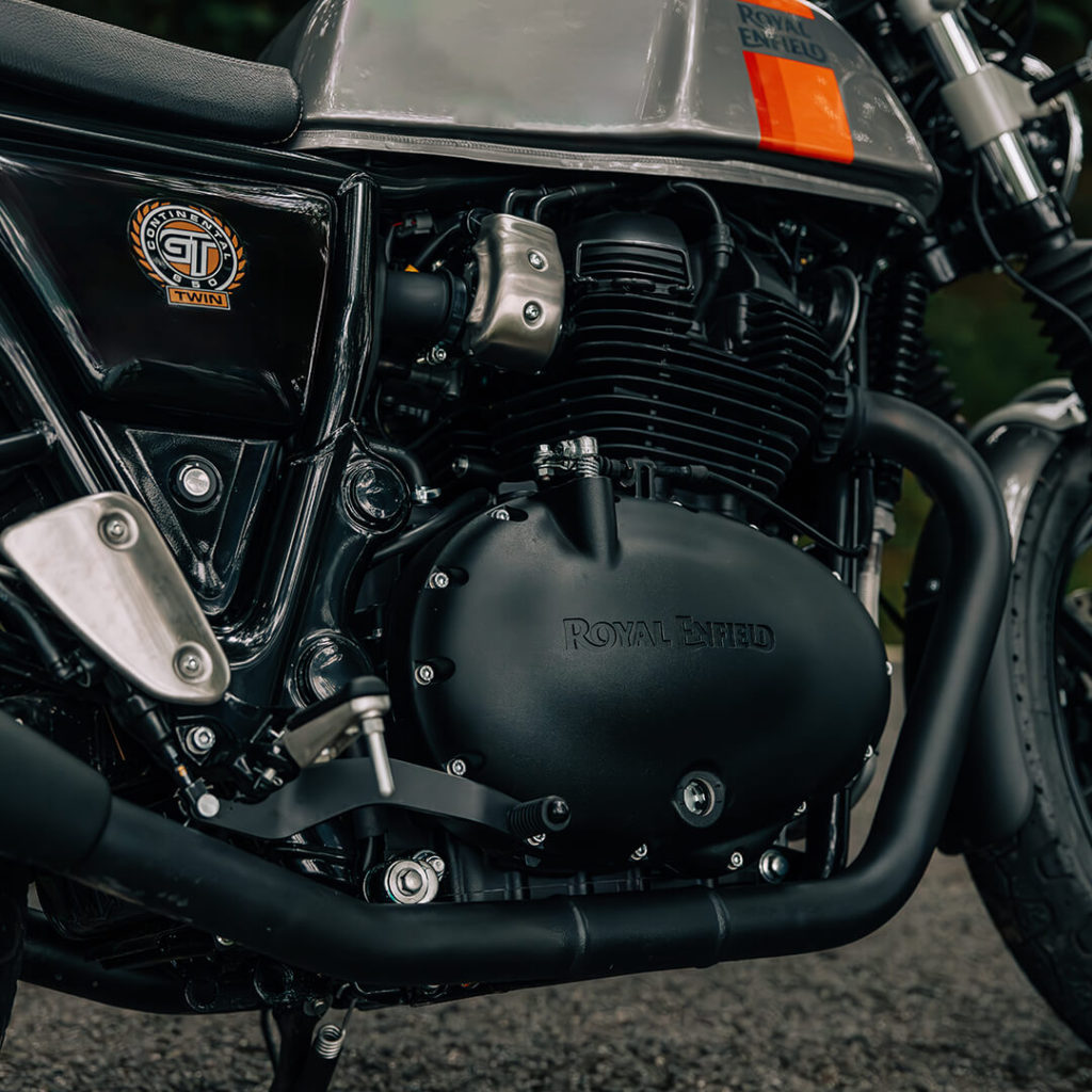 A ergonomia também reforça a proposta esportiva. A Continental GT adota semi-guidões, pedaleiras recuadas e não possui carenagem, características típicas das café racers clássicas. O resultado é uma motocicleta com postura mais inclinada para frente e comportamento mais dinâmico nas curvas.