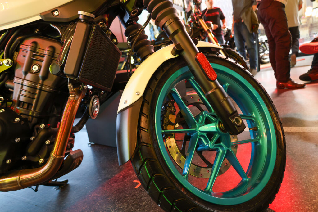 O perfil da moto é claramente “roadster premium”: quadro tubular de aço de dupla viga, assento escalonado, tanque de 11 litros, faróis em LED, silenciador elevado e pneus sem câmara de 17 polegadas em ambos os eixos. Para ajustar ao estilo de pilotagem e condição da via, ela vem com dois modos — Performance e Eco — além de sistema ride-by-wire e EMS responsivo.