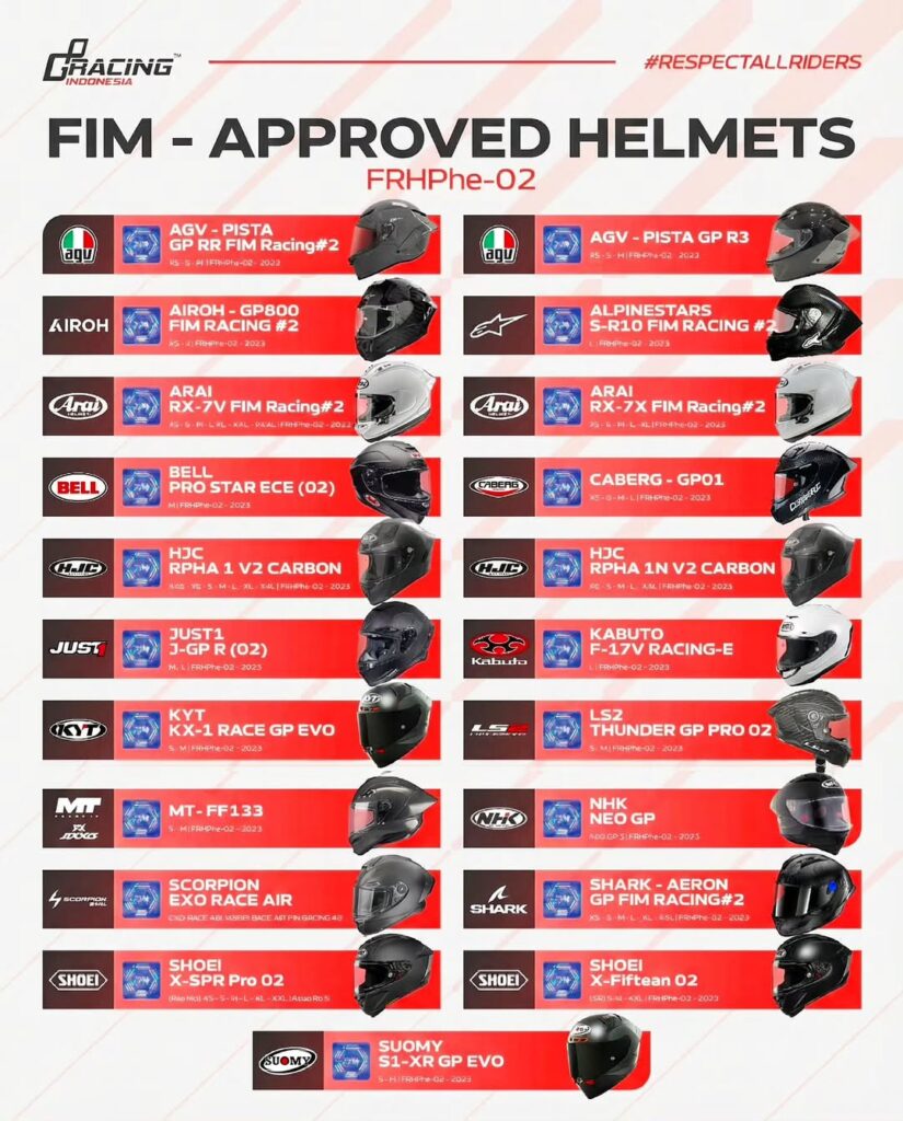 Ao escolher um capacete da lista FRHPhe-02, o motociclista está adquirindo o mesmo nível de proteção de pilotos como Francesco Bagnaia ou Fabio Quartararo.