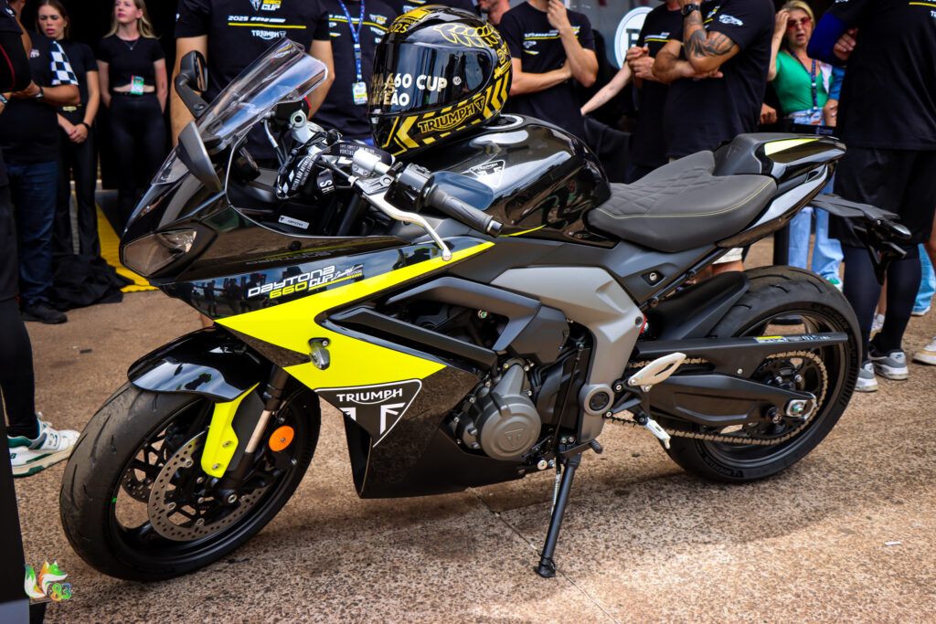 A Daytona 660 Cup abriu as decisões com emoção desde antes da largada. A Triumph apresentou a edição especial Daytona 660 Shibuya Garage x Teidy, limitada a 60 unidades, inspirada na moto da categoria.