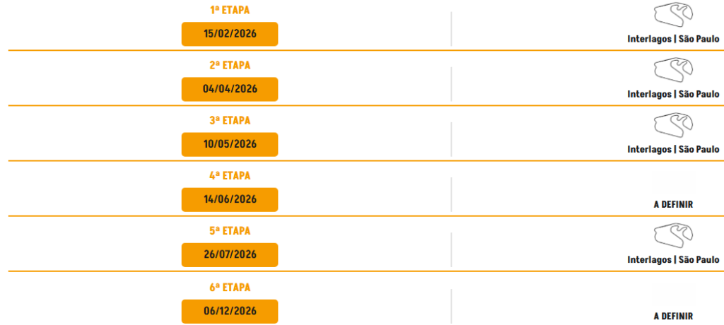 Após a realização das duas primeiras etapas, em Interlagos, o campeonato segue seu calendário com a proposta de centralização da maior parte das provas no Autódromo de Interlagos. A estratégia, adotada já nesta temporada, tem como principal objetivo otimizar a logística das equipes e reduzir custos operacionais ao longo do ano.