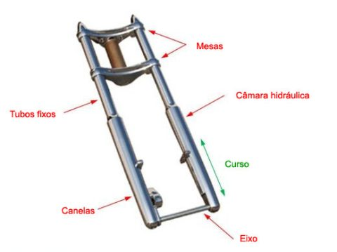 - Amortecimento (oleo + válvula): controla retorno e compressão