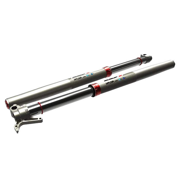 Aqui, os tubos mais grossos ficam presos na mesa superior, enquanto os tubos finos descem até a roda. É mais comum em motos esportivas, naked de alta cilindrada e modelos premium.