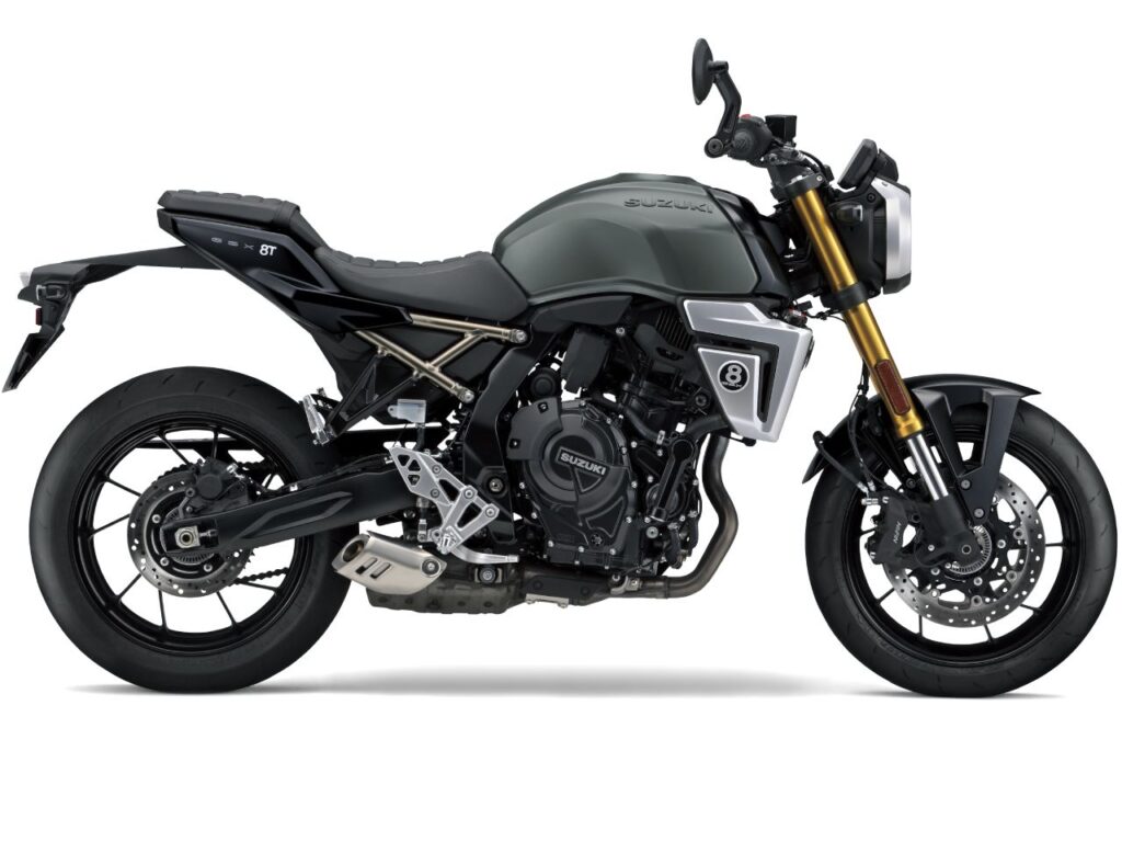 A GSX-8T estará disponível em três opções de cores: Candy Burnt Gold, Metallic Matt Steel Green ou Metallic Matt Black. Todas elas contam com assento preto, protetor de radiador com acabamento escovado, bengalas douradas e rodas pretas.