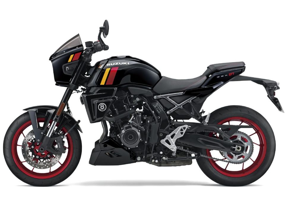 Já a GSX-8TT oferece duas combinações distintas: Glass Sparkle Black com rodas vermelhas e grafismos em vermelho e dourado; e Pearl Matt Shadow Green com rodas douradas e listras em dourado e bronze.