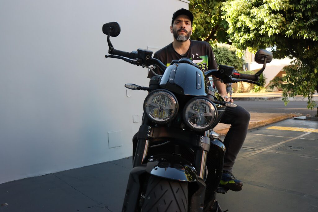 A estrutura da moto é toda em alumínio, com entradas de ar bem posicionadas e o motor em acabamento Black Piano. Aqui, vale um adendo: a versão R (a minha) não vem com quickshifter nem aquecedor de manopla, itens disponíveis na GT. Faltou, Triumph!